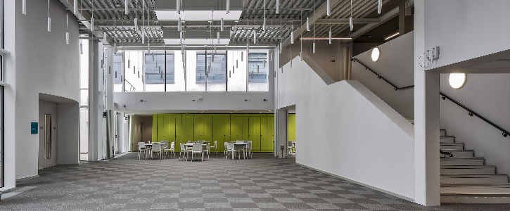 Completed in late 2017, the £14m scheme included the complete internal and external transformation of the 4,710m2 Wilfred Brown Building creating a new gateway at the western boundary of the university. The complete structural refurbishment and remodelling, saw the building stripped back to its concrete frame and reclad with a ‘saw-tooth’ façade and a perforated metal screen to the third-storey.