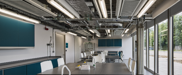 Extensive use of renewable technologies included a Ground Source Heat Pump (GSHP) to provide both heating and cooling medium to the building, complemented by use of gas boilers and an evaporative air cooler, all of which are directly controlled via the advance control system. Energy usage is also monitored via M-Bus Meters fitted to key systems, with data harvested and incorporated into the Trend system by use of Synapsys SIPe modules.