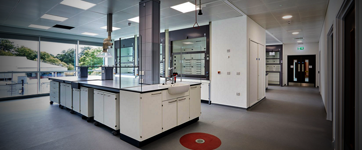 The laboratory ventilation system comprises a number of critical systems with control and management of the fume cupboards provided by Phoenix Controls. The system, directly integrated into the BMS package allows the real time reading of required air volumes in order to correctly control the dedicated supply and extract fans serving the space. The system allows energy savings to be maximised whilst maintaining the required safety integrity for the laboratory operatives.