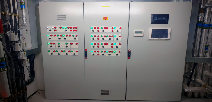 A second control panel is dedicated to the operation of the MRI Imaging Suite and provides control of the chilled water system and emergency extract functions in response to any depletion of oxygen in the space via a Crowcon gas detection system.