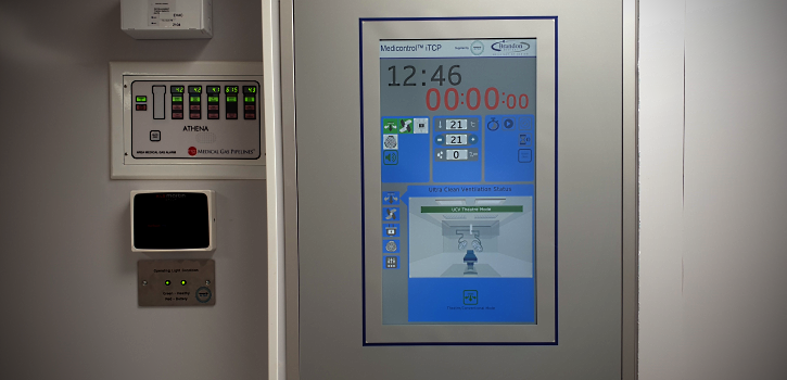 Built on the Trend Controls IQ4e range of controllers, a single control panel provides centralised control and management of the buildings HVAC systems. Utilising an energy efficient air source air source heat pump system to provide domestic hot water to the premises, the design also features two dedicated Air Handling Units each serving a state-of-the-art operating theatre. Directly controlled by the BMS to provide the ambient conditions required by the surgical teams, surgical touchscreens also provide a local control interface and give real time data on the systems operational conditions.
